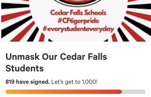 The petition, posted on Change.org and shared through Facebook and other social media, currently has 713 signatures. The post’s description said, “Parents of children in the Cedar Falls Community School District should be able to decide for their own children whether to wear masks or not for the 2021-2022 school year. We want facemasks to be optional for the students, staff and parents of Cedar Falls Community School District for 2021-2022. Please sign if you live in the Cedar Falls Community School District and would like the parents in our district to have the choice for their own children to mask or not.”