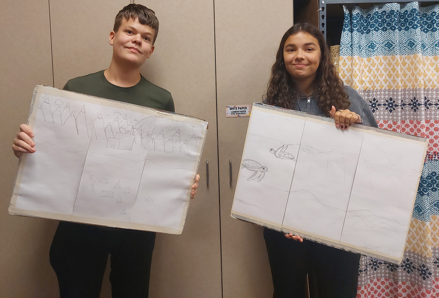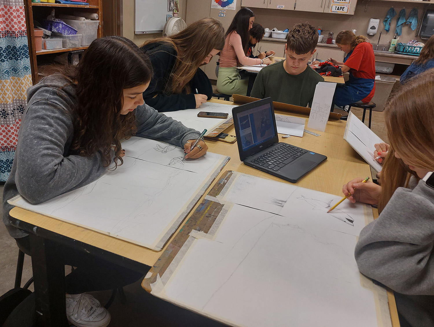 Art teacher Lisa Klenske said, “This year, our numbers are up; we’ve got the teachers from Holmes coming over to cover a couple of drawing classes for us.”